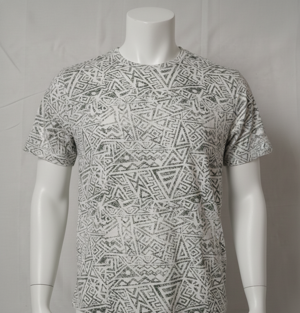 Be the first to review “Men’s DNMX All-Over Geometric Aztec Print T-Shirt – White & Green”